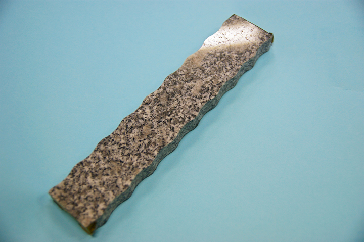 ウォータージェットだけでなく、水に研磨剤を加えたアブレシブジェット加工も行っており、他社ではなしえない、ウォータジェット加工での癖を克服する工夫を施しております。